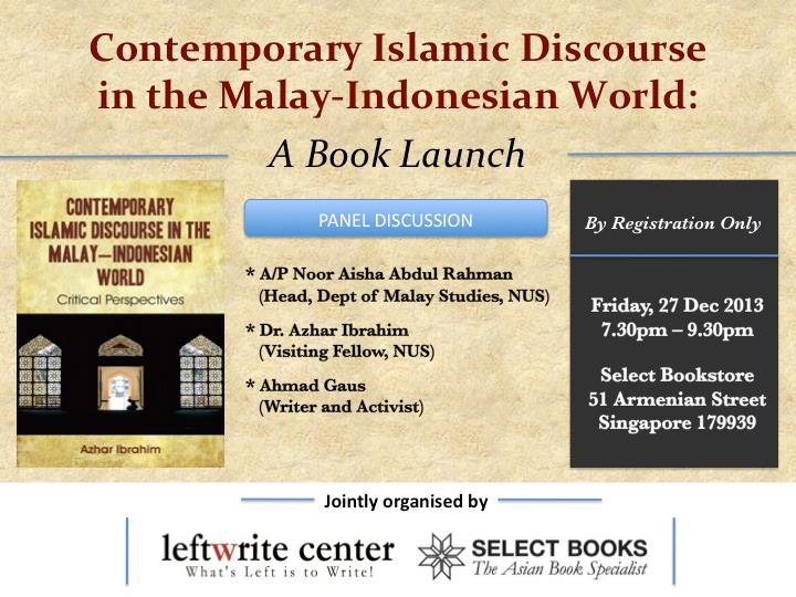 THRU this forum I would like to express the highest gratitude to my colleagues, Dr. Azhar Ibrahim for his book launching “Contemporary Islamic Discourse in the Malay-Indonesian World”. This book is an ocular proof of the intellectual relations than increasingly productive between Malayan people especially between Singapore and Indonesia.