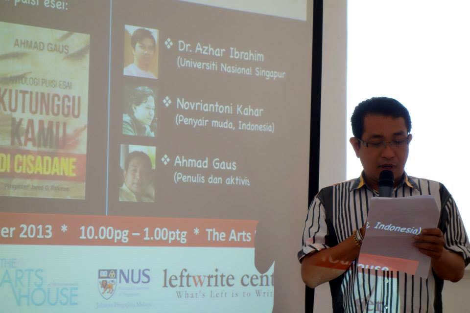 Sabtu pekan lalu, 28 Desember 2013, dua buku puisi esai karya penulis Indonesia diluncurkan dan dibedah di Singapura. Dua buku tersebut masing-masing Imaji Cinta Halima karya Novriantoni Kahar dan Kutunggu Kamu di Cisadane karya Ahmad Gaus. Acara ini merupakan kerjasama antara Leftwrite Center, Jabatan Pengkajian Melayu National Universtity of Singapore (NUS) dan the Art House.