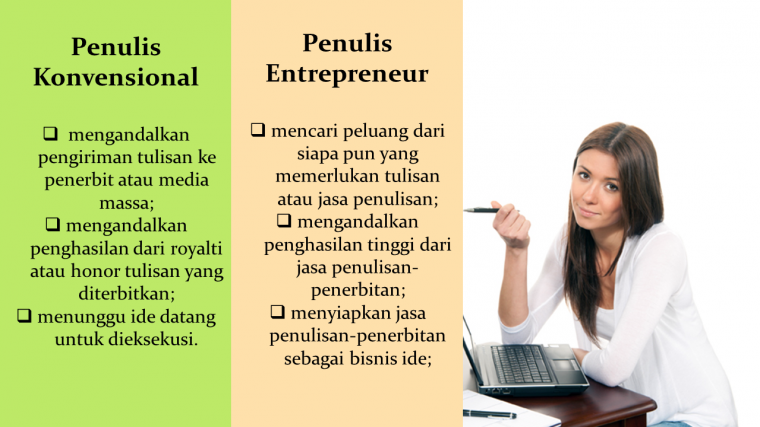 Untuk itulah buku ini terbentuk, bagaimaana mendidik beberapa penulis-penulis muda yang akan turun kepada dunia penulisan. Tetapi disini menekankan bukan hanya untuk idealisme tetapi juga membentuk mental pengusaha dalam bidang ini. Bagaimaan dirinya tidak hanya bisa menulis dengan indahnya irama nada yang diberikan, tetapi bermental teguh dalam satu usaha penulisan. Satu kata bagi WriterPreneurship –> Menulis tidak hanya sekedar HOBY. Tetapi jauh lebih tajam, yaitu Poin lebih bekerja keras dan pengusaha.