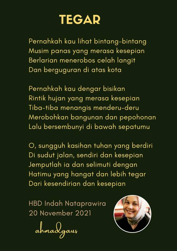 Dia cantik, dia pintar, karirnya sukses, kini staf ahli Menteri Keuangan, usia 50-an, tapi sampai sekarang masih memilih hidup melajang. Selamat ulang tahun, sahabat hatiku, Indah Pertiwi Nataprawira.
