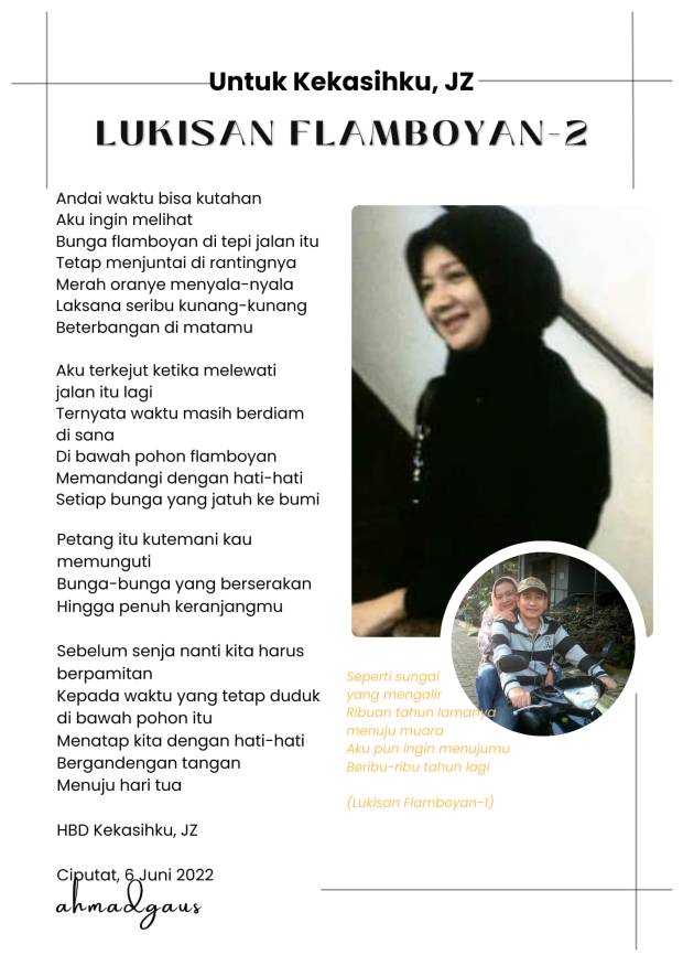 Lukisan Flamboyan-2 Sumber: FB saya: https://www.facebook.com/photo/?fbid=10159197304167599&set=a.375767877598 Share this: Click to share on WhatsApp (Opens in new window) WhatsApp Click to share on Facebook (Opens in new window) Facebook Click to share on X (Opens in new window) X Click to share on LinkedIn (Opens in new window) LinkedIn Click to share on Tumblr (Opens in new window) Tumblr Click to share on Pinterest (Opens in new window) Pinterest Click to email a link to a friend (Opens in new window) Email Like Loading... Related Published by Ahmad Gaus Sebutir debu di ujung sepatu View all posts by Ahmad Gaus