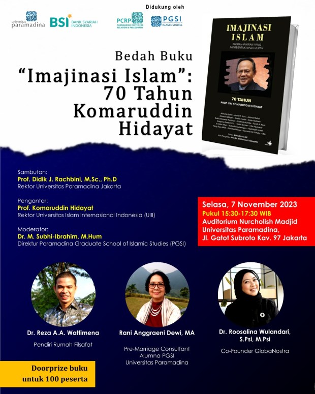 Salam teman-teman , ini buku baru saya selaku editor diterbitkan oleh Penerbit Buku Kompas. Buku ini sudah diluncurkan dan dibedah di kampus UIII Depok pada 18 Oktober lalu. Dan pada Selasa tanggal 7 November nanti akan didiskusikan lagi di Universitas Paramadina, Silakan hadir ya. Ada 100 buku gratis untuk 100 pendaftar pertama. Kalau anda di luar Jakarta dan berminat memiliki buku ini, sila hubungi: 0857 5043 1305.