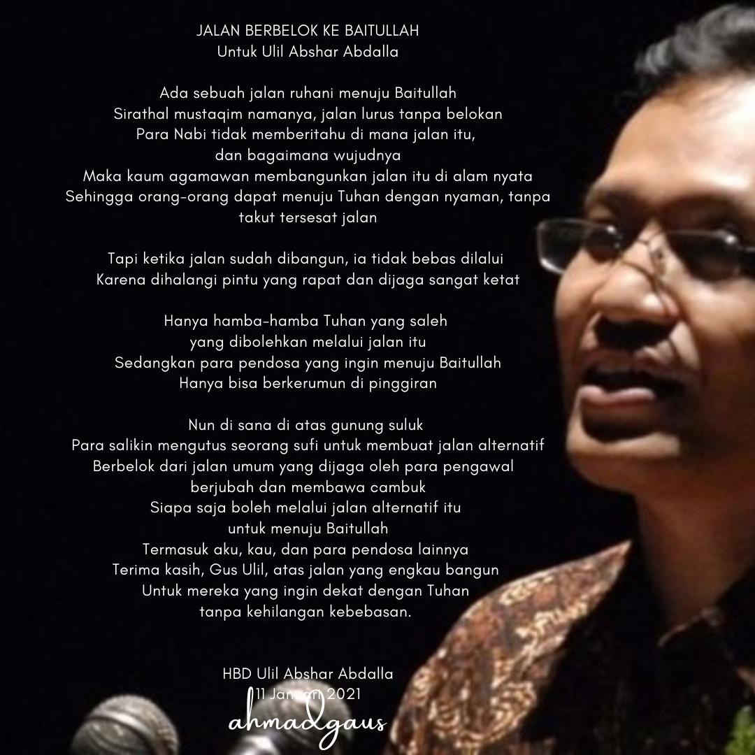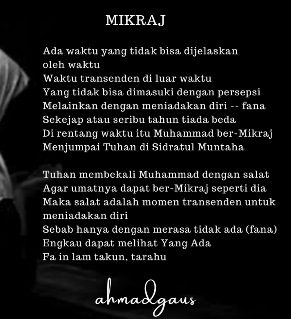 Puisi ini dibacakan oleh: Shahnaz Haque pada acara Halal Bihalal Cak Nurian Urban Sufism, Minggu 16 Mei 2021. Sayang saya belum mendapatkan rekaman audionya jadi belum bisa ditampilkan. Versi podcast akan dibuat menyusul ya 🙂
